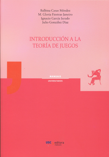 01 La teoría de juegos es un campo de las matemáticas cuyo nacimiento suele situarse en 1944, año la publicación del libro Theory of Games and Economic Behavior escrito por el matemático John von Neumann y el economista Oskar Morgenstern. Su objeto de estudio son los problemas de decisión en los que intervienen varios agentes, que compiten o cooperan para conseguir sus objetivos. Desde su aparición en el panorama científico, la teoría de juegos se ha convertido en un importante instrumento en las ciencias sociales, especialmente en la economía, y se ha aplicado con éxito en disciplinas que tratan de la interacción entre individuos. Este libro está pensado para ser utilizado como texto principal de un curso de introducción a la teoría de juegos de seis créditos ECTS. Abarca tanto los contenidos básicos de la teoría no cooperativa como los de la teoría cooperativa. Cuenta con numerosos ejemplos y con ejercicios, algunos resueltos. Está escrito con un estilo riguroso, no informal, aunque pretende introducir los contenidos matemáticos de un modo asequible a todo tipo de estudiantes universitarios siempre que tengan conocimientos elementales de matemáticas.